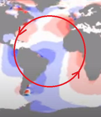 Кааак Луна может влиять на отдельные точки приливов и отливов на целом полушарии? Нет такого, что впадина или выпуклость воды движется по Земле, всё колеблется как в тазике - почти беспорядочно.