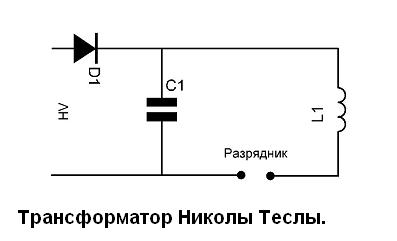 Источником питания трансформатора Николы Теслы является положительное пульсирующее высокое напряжение.