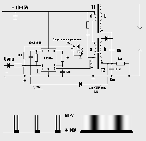 Проверил в работе свой новый генератор ВН, пока по этой схеме: