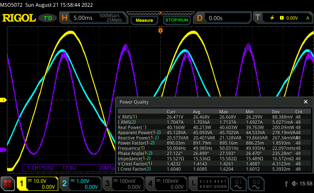 ПыСы Нижняя осцилограмма - фиолетовым мощность, только уменьшаем значение тока и мощности в 10 раз, так как съем шел на резисторе 10 Ом;
