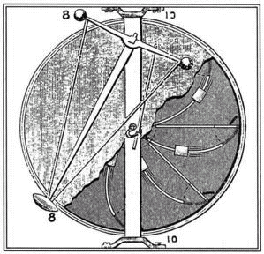 Посему понимаем что колесо действительно работало. И движущей силой был перепад атмосферного давления днём и ночью (из-за разницы температур). Работали обычные цылиндры с поршнем. Около 4 или 8 штук. В то тёмное время никто не подозревал о существовании атмосферного давления и его разницы. Даже сейчас такая мысль не приходит многим в голову что можно сделать на этом принцыпе двигатель, пускай медленный, но на подзавод часов и поднытие груза хватит.