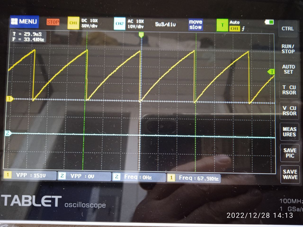Это прошлая осциллка с коаксиалом. После неё с конденсатором 150 пФ, следом - она же только при 100 нС/кл. При 10 нС/кл ослик не успевает увидеть верх импульса.