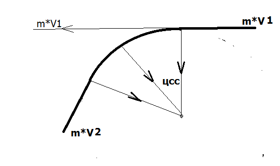 Вот тело движется по инерции прямолинейно и равномерно. У него есть количество движения -импульс m*V.
