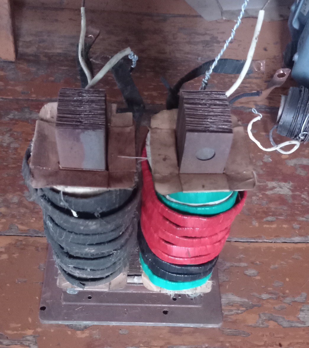 Если кратко то автотрансформатор являвшийся поставщиком тока для суперавтотрансформатора заискрил с треском как при разряде конденсаторов заряженных вольт до ста между витками шин 9- вольтовых обмоток изолированных матерчатой изолентой при попытке запустить в схеме вольтодобавки и кончился. Замкнуло где то насмерть, при подключении к сети выбивает автоматы. Я его разобрал, надо перематывать изоляцию.