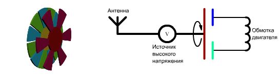 Браво!!! Осталось рассчитать расстояние пробоя от напряжения и площать пластин (соответственно диаметр). А вообще идея неплохая. Только в такой вертушке токи будут болше тогда, когда выше скорость. Что дальше?