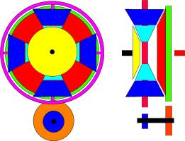 Ну или второй вариант. Вместо штыря ведомое колесо, которое отстает от ведущего на угол в градусах, равный скорости вращения ведущего.. Во как!